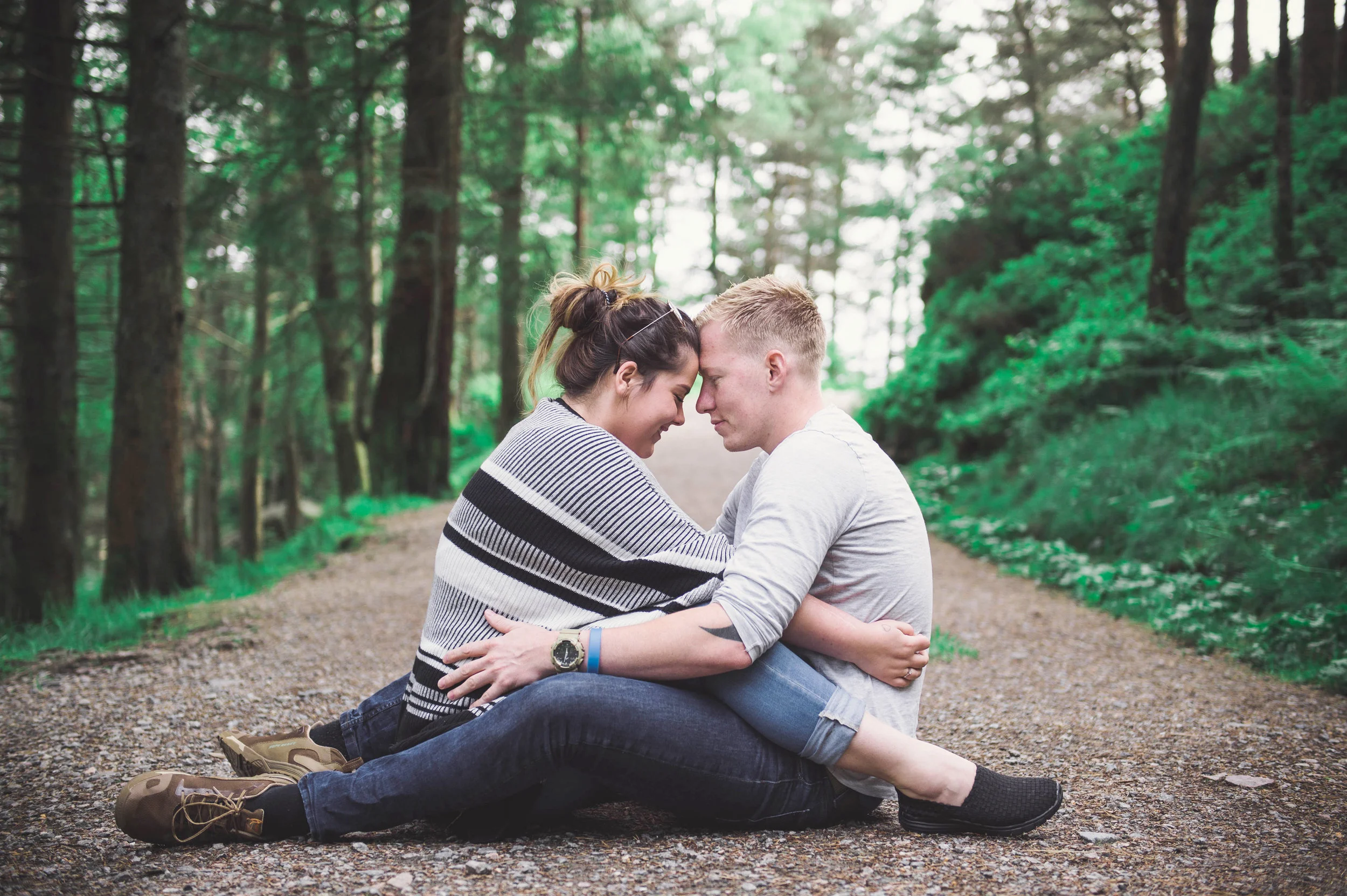 Therese og Joakim forlovet seg på vinteren, og ønsket at jeg skulle fotografere paret for å markere forlovelsen i juni når det var grønt, frodig og fint vær.